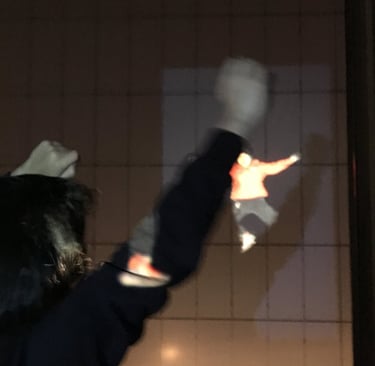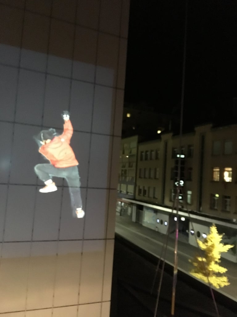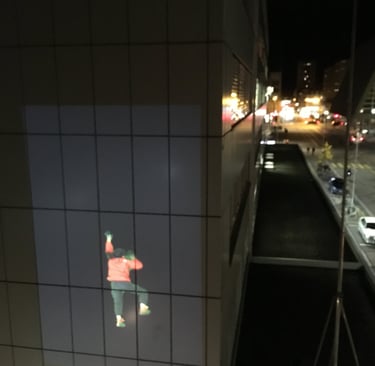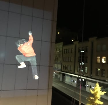 This performance installation features a video of myself moving playfully on a building wall, blending absurd gestures, dance, and mystery. The playful yet enigmatic movements invite viewers to reconsider the boundaries of performance and the hidden narratives within urban spaces.